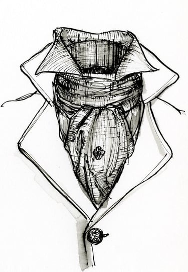 Learning to wear a cravat is remarkably simple. One lays it around the neck, crosses the ends, ties a loose knot, and tucks the silk into the shirt with a natural ease. The top button or two is left undone so the cravat may sit comfortably. The effect should be effortless, as if the wearer has an instinctive understanding of dress rather than a technical one. Because it has a relaxed formality, the cravat is ideal for settings that sit between the purely casual and the overtly formal. It suits country weekends, gallery visits, refined lunches, or any moment where a gentleman wishes to look presentable without appearing stiff.